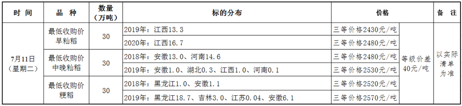 注:销售价格等级差40元/吨;本交易安排为预公告,交易日的实际销售数量以湖北粮网官网发布的交易清单为准。