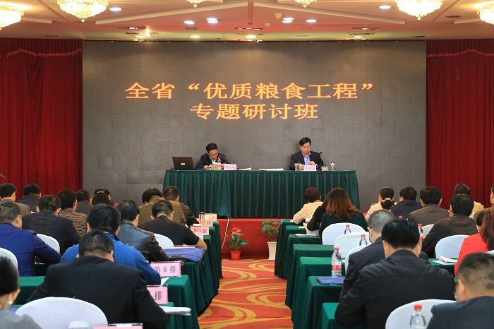 为深入推进我省粮食供给侧结构性改革,扎实实施“优质粮食工程”,加快粮食经济转型升级,10月24日,由省粮食局举办的全省“优质粮食工程”研讨班在汉正式开班。各市州粮食局分管局长、产业科(处)长,10个“优质粮食工程”示范县(市)粮食局局长,核心粮食主产县(市)、重点粮食主产县(市)粮食局分管局长,粮油加工龙头企业代表等约130人参加了研讨。研讨班采取专家授课和讨论研讨的方式,主要内容包括学习国家、省关于“优质粮食工程”有关文件,专家解读如何实施“中国好粮油”行动计划、促进粮油产业转型升级,讨论交流实施“优质粮食工程”的思路和做法等。